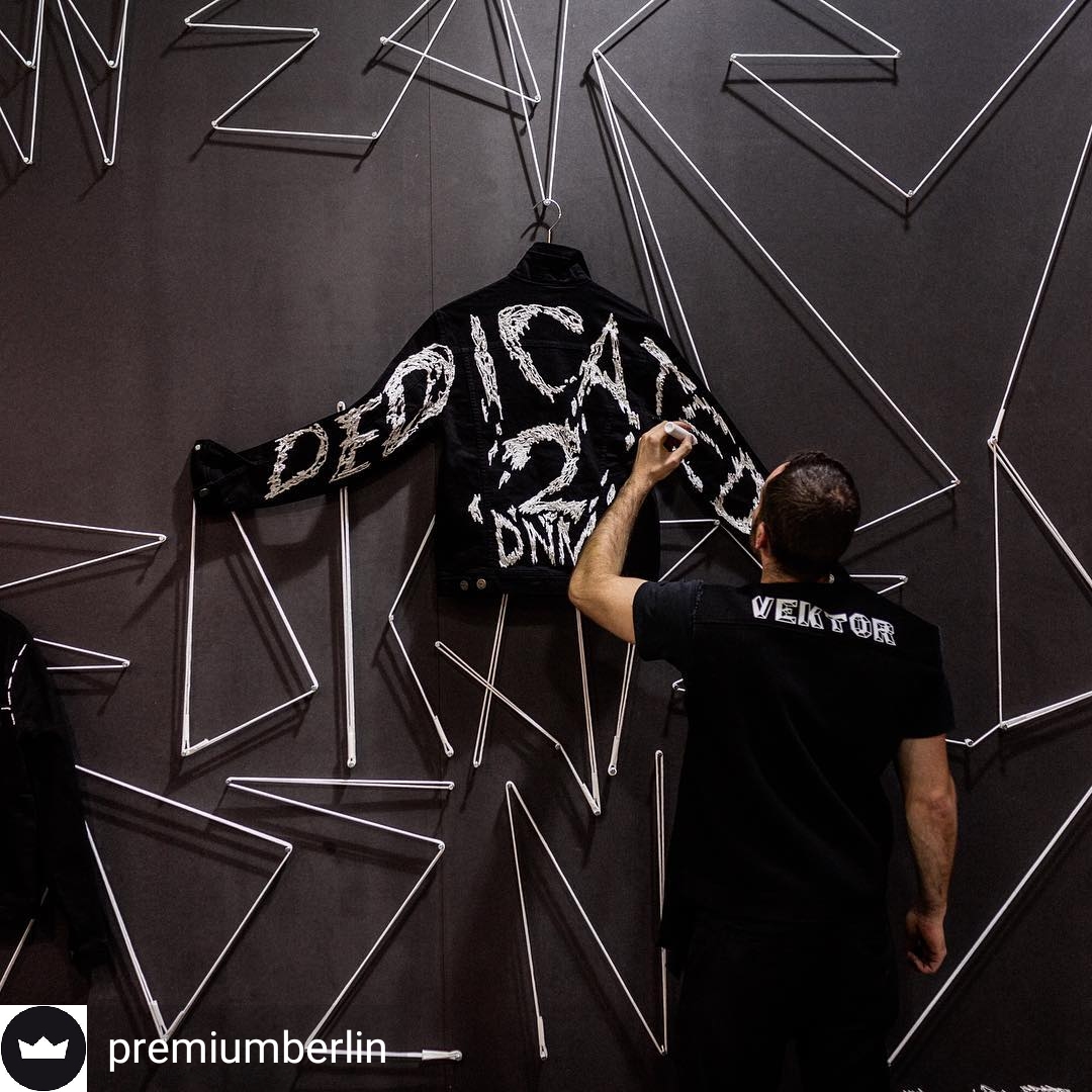 booth design + draw up on Denim Jackets for GABBA Denim / Instinkte - Tim Sean-Lee Mut Lu x Andreas Hachulla 2018 Premium @ Berlin Fashion Week / Photo: Premium Berlin