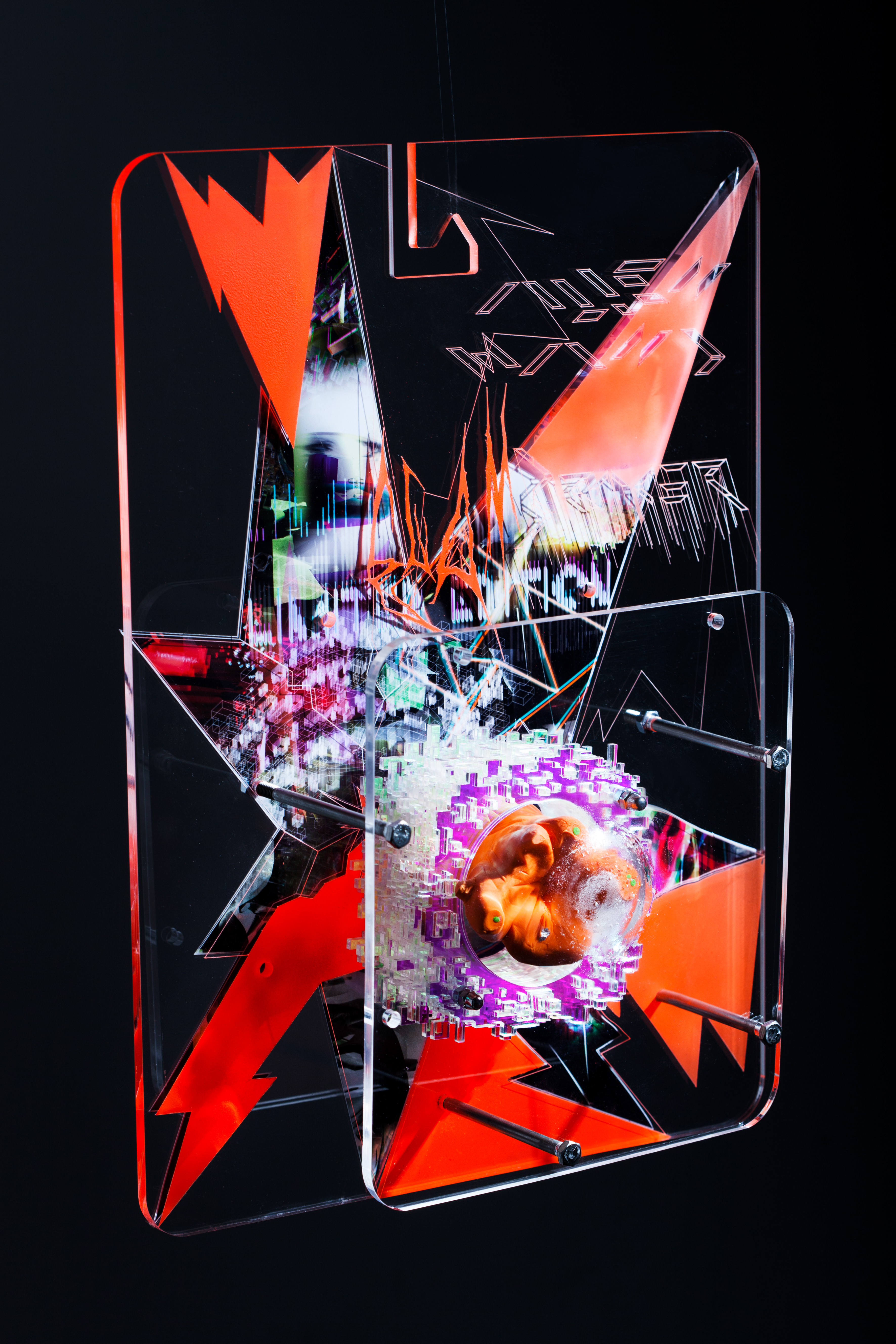 "Alien Hand Glam Bracer" - Limited Edition 2016 Plexiglas Radiant, Plexiglas, Spraypaint, Metal, printed photopaper Photo: Caroline Wimmer