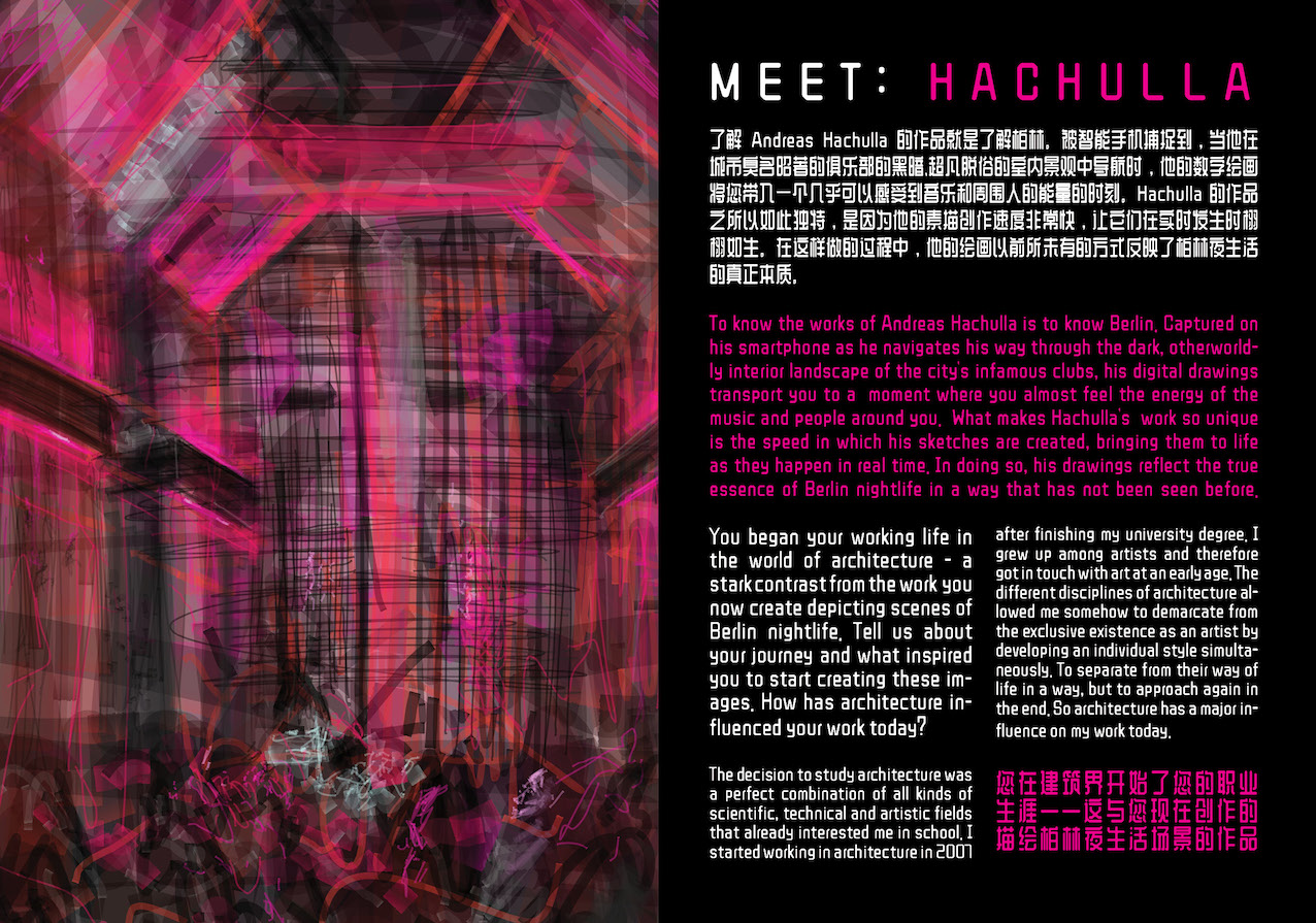 -born in 1980 in Leipzig, working interdisciplinary, blending architecture, digital art and music. Growing up in the shadow of the Leipzig School, Hachulla experienced the transformation of East Germany firsthand. He studied architecture at TU Darmstadt from 2000 to 2007, but his artistic journey began much earlier. Since 1994, Hachulla has been exhibiting his artwork, and in 1996, he started performing live music.